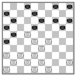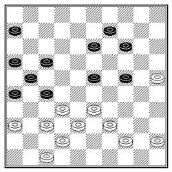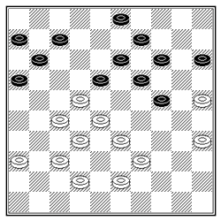 Na Karels 12-18 staat niets een dubbele ruil in de weg. Maar na 37-31, 18x27 en 31x22 besefte de witspeler dat de volgorde van slaan het partijverloop toch wel behoorlijk kan beinvloeden. Na 26-31 gaf hij teleurgesteld de strijd op.